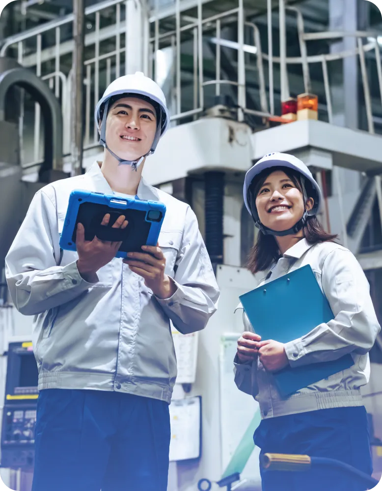 ■工場の困りごとを解決 定期メンテナンス業務で定期的に顔を合わせることで、工場の日々の困りごとを相談していただけるようになります。コンプレッサー以外の製品の提案につなげられ、知識やスキルの幅も広がっていきます。近年では、人手不足に対応した自動搬送車(AGV)や物流ロボットなど、次世代の働き方を提案する先進機器も取り扱い、お客様の役に立てるように日々アップデートをしています。